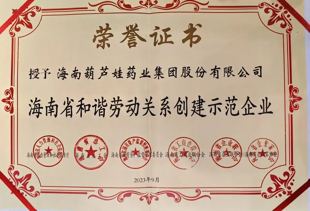 Cmp冠军药业集团获评“海南省和谐劳动关系创建示范企业”