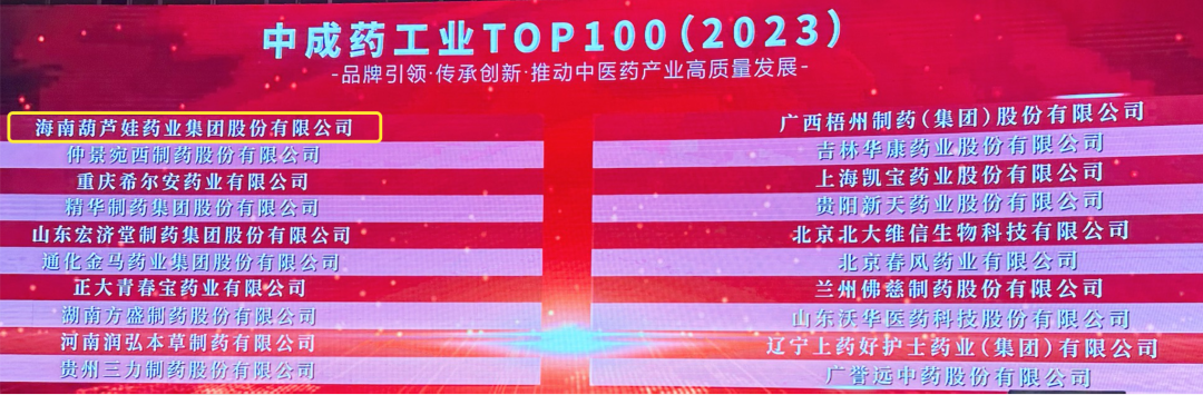 Cmp冠军药业集团荣登2023中成药工业TOP100榜单