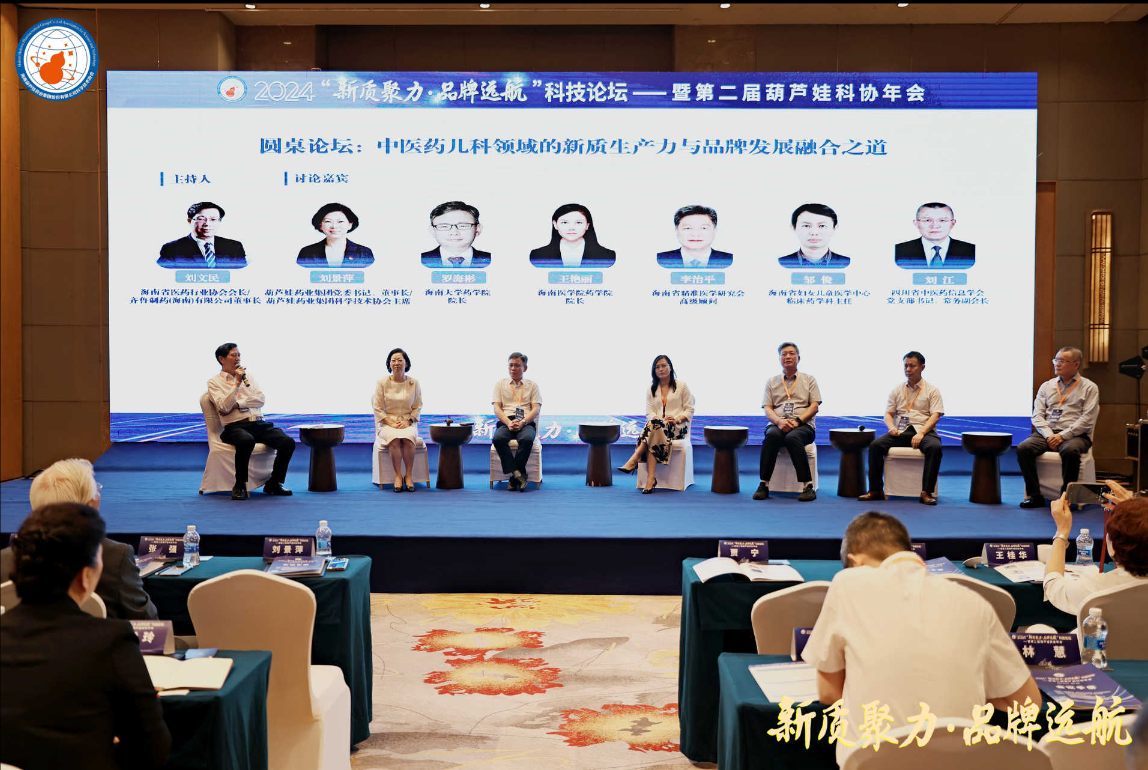 Cmp冠军药业集团党委书记、董事长刘景萍,海南大学药学院院长罗海彬、海南医学院药学院院长王艳丽、海南省精准医学研究会高级顾问李治平、海南省妇女儿童医学中心临床药学科主任邹俊,四川省中医药信息学会党委书记、常务副会长刘江等,在主题为“中医药儿科领域的新质生产力与品牌发展融合之道”的圆桌论坛中积极献策。海南省医药行业协会会长、齐鲁制药(海南)有限公司董事长刘文民主持论坛。
